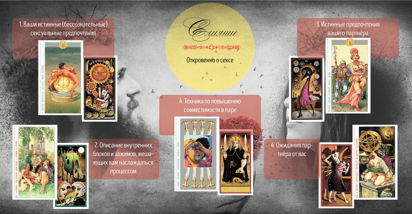 itil, Танечка, привет! Спасибо, что читаешь - это приятно, пытаюсь делать полезное дело, помогать людям становиться счастливее. На классике вообще мало что смотрю. Тусклые они для меня, не видно деталей и красок, а мир многообразен. Секс только на Декамероне смотрю, но ещё и Девиантов для себя прикручиваю. Обычно если смотрю отношения на любой колоде, то сексуальная тематика видна, но обозначается только условно. Скорее, там потенциал, совместимость и пр., а Декамерон сразу детали даёт. Много деталей и все важны. Вплоть до эректильной дисфункции в силу нервного потрясения.