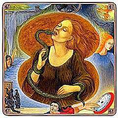 И еще одно маленькое пояснение. Несмотря на свое название, карты снов и фантазий могут не иметь ничего общего с вашими снами. На картах изображено то, что приснилось художникам, которые до сна находились в определенном состоянии (например, любви, ненависти и т.п.). Наша задача заключается в том, чтобы найти в этих картах свою тему, то есть проассоциировать себя или события в своей жизни с образами, приведенными на картах. Для большей эффективности дальнейшую работу лучше строить совместно с психотерапевтом, который работает с картами снов и фантазий.
